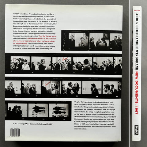 n 1967, The Museum of Modern Art presented New Documents, a landmark exhibition organized by John Szarkowski that brought together a selection of works by three photographers whose individual achievements signalled the artistic potential for the medium in the 1960s and beyond: Diane Arbus, Lee Friedlander and Garry Winogrand. Though largely unknown at the time, these three photographers are now universally acknowledged as artists of singular talent within the history of photography. The exhibition articulated a profound shift in the landscape of 20th-century photography, and interest in the exhibition has only continued to expand. Yet, until now, there has been no publication that captures its content. Published in celebration of the 50th anniversary of the exhibition, Arbus Friedlander Winogrand features full-page reproductions of the 94 photographs included in the exhibition, along with Szarkowski’s original wall text, press release, installation views and an abundance of archival material. Essays by curator Sarah Hermanson Meister and critic Max Kozloff, who originally reviewed the exhibition for The Nation in 1967, critically situate the exhibition and its reception, and examine its lasting influence on the field of photography.