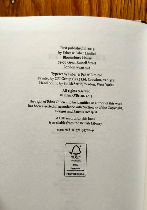 Special edition slipcased hardcover in new condition. One of 150. Numbered. Signed by Edna O'Brien. No markings. This is a new book.