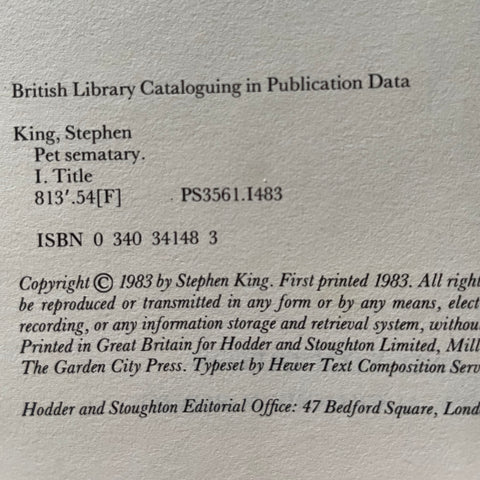 Setanta Book Store/Rare Fiction/Pet Sematary - UK 1st