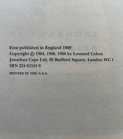 Selected Poems by Leonard Cohen published by Jonathan Cape (1969)